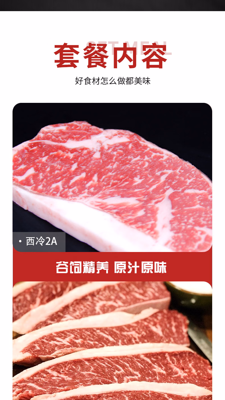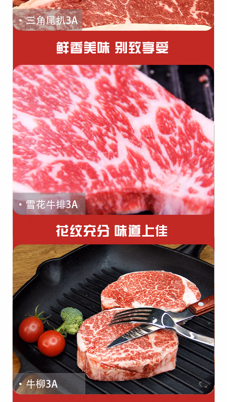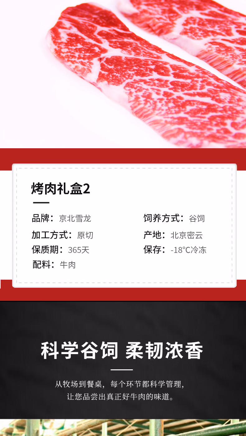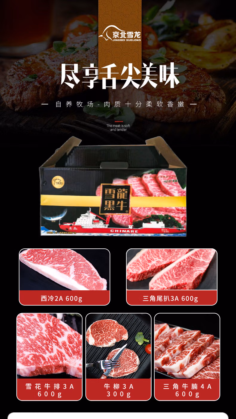 京北雪龙 烤肉礼盒 礼盒含:西冷牛排+三角尾扒+雪花牛排+牛柳+三角牛腩 3000g