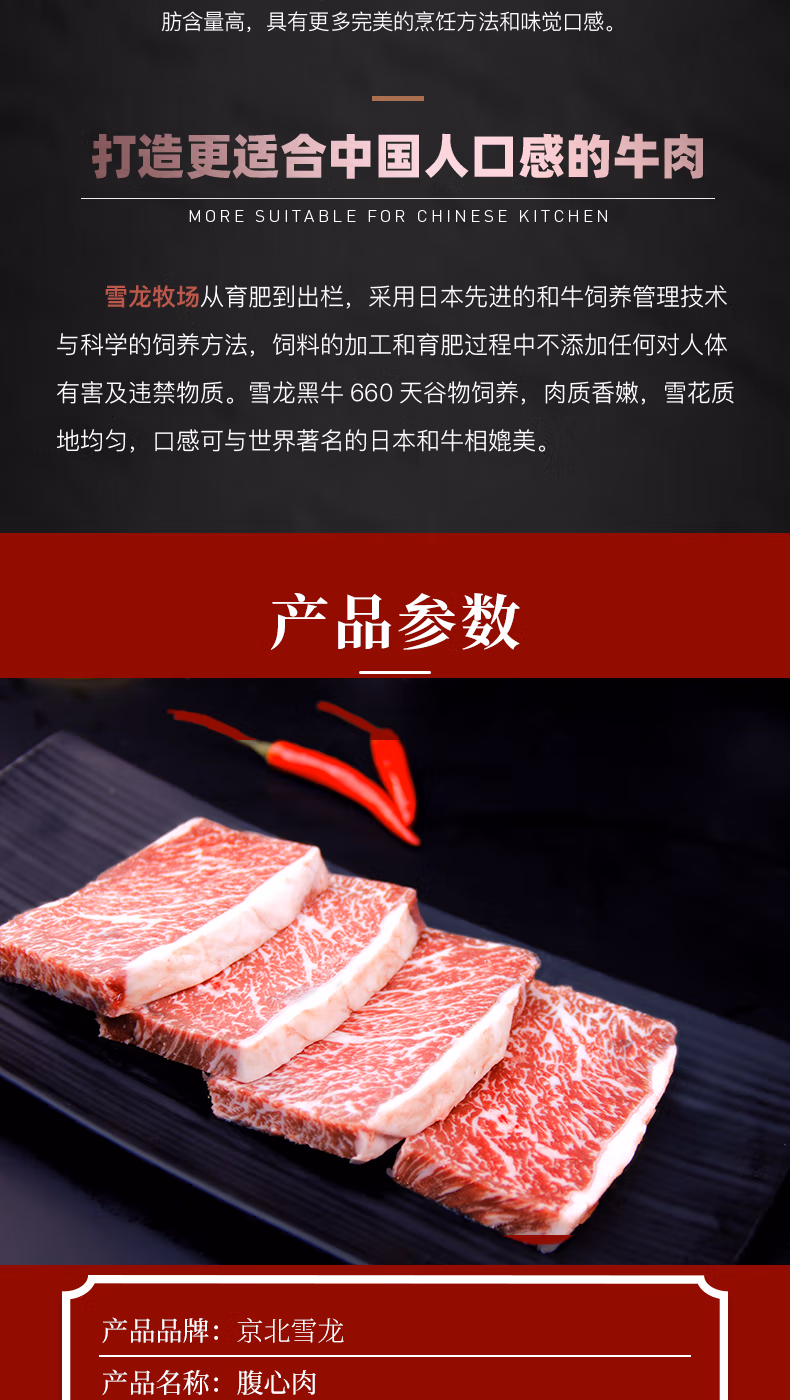 京北雪龙 谷饲原切 腹心肉2A 拒绝拼接 0注水0添加 无腌制原滋原味 腹心肉2A 500g