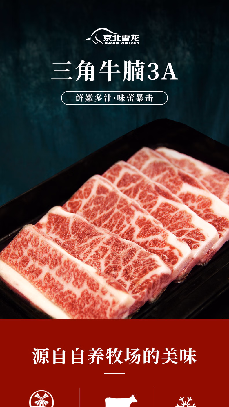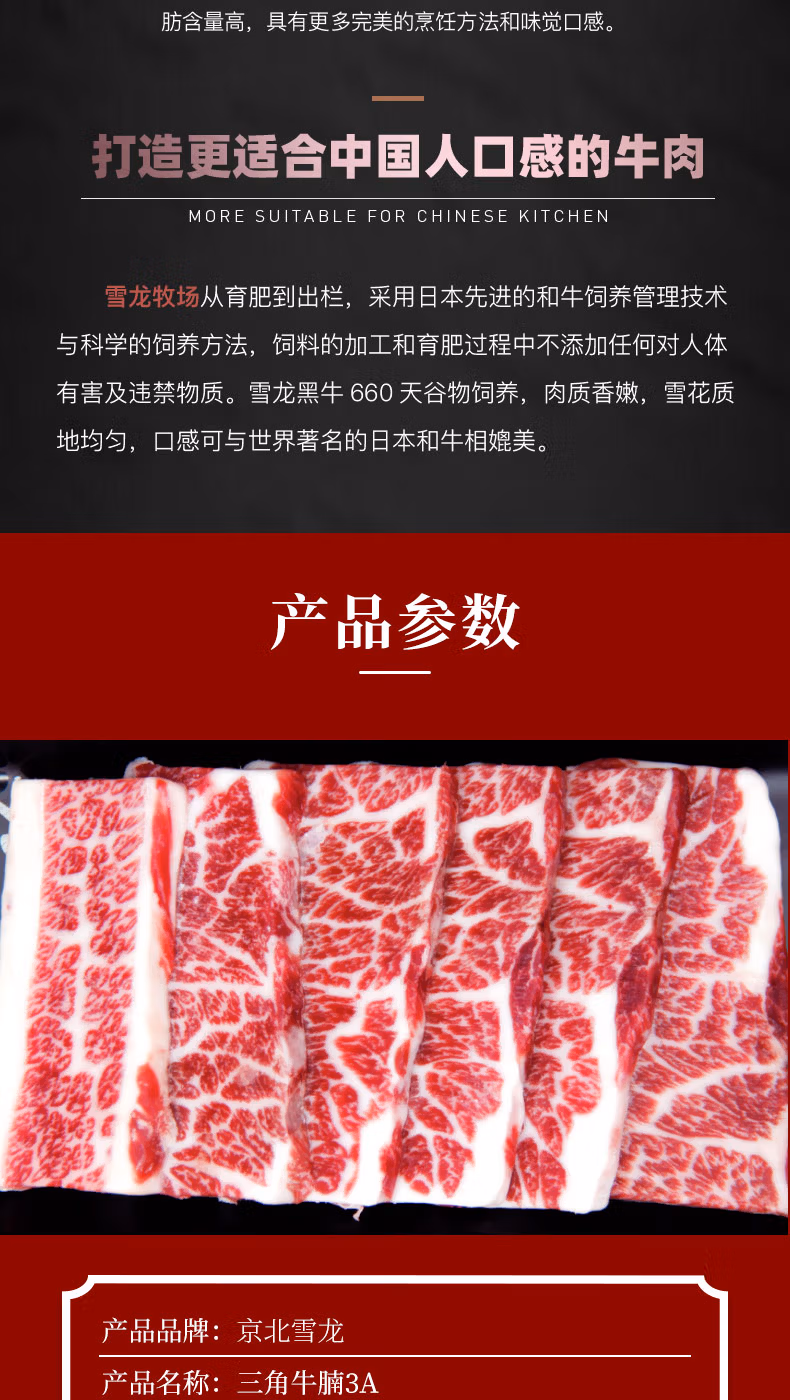 京北雪龙 谷饲原切 三角牛腩3A 拒绝拼接 0注水0添加 无腌制原滋原味 三角牛腩3A 500g